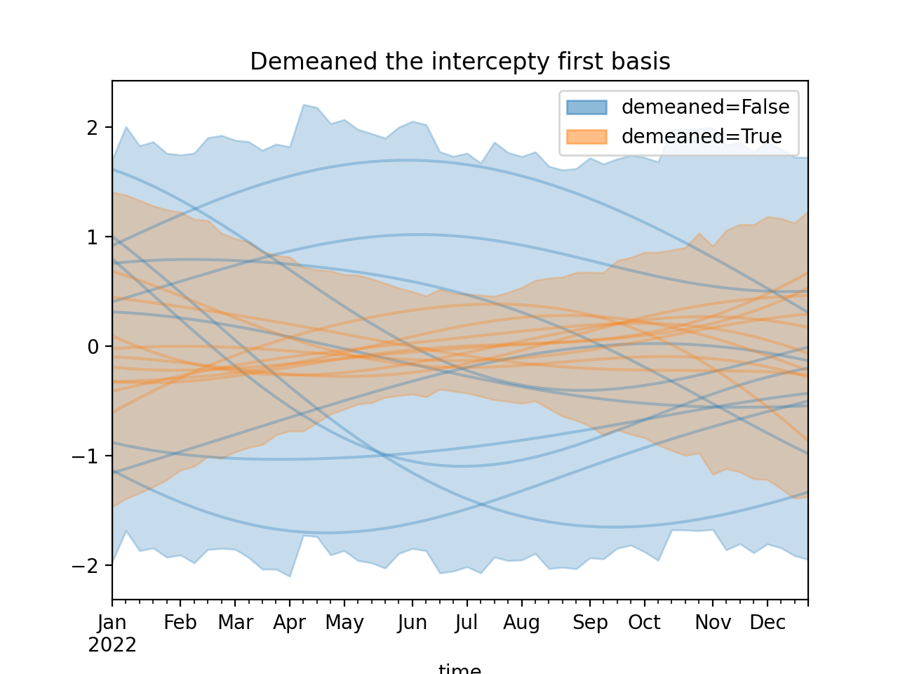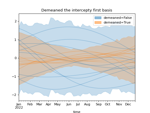 )Using a demeaned basis to remove “intercept” effect of first basis: